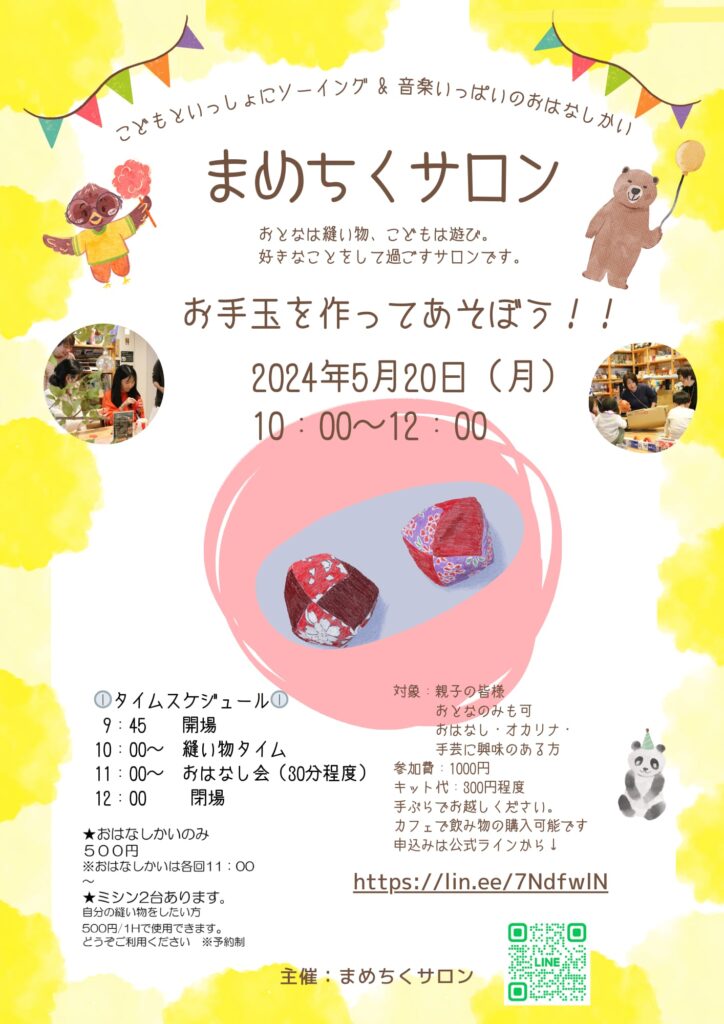 お子様のそばではなかなかできない縫い物、そして音楽いっぱいのおはなしかい。