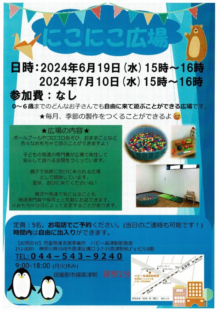 高津駅前”にこにこ広場”へ遊びにいってみませんか?