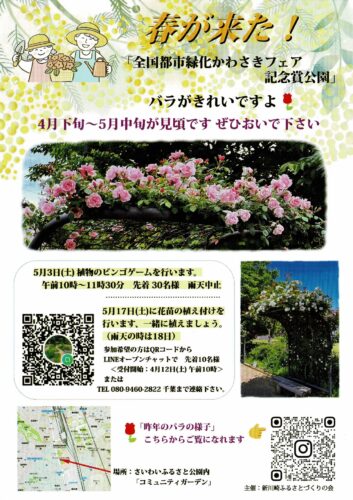 さいわいふるさと公園内の「コミュニティガーデン」ではもうすぐバラの花が見頃!