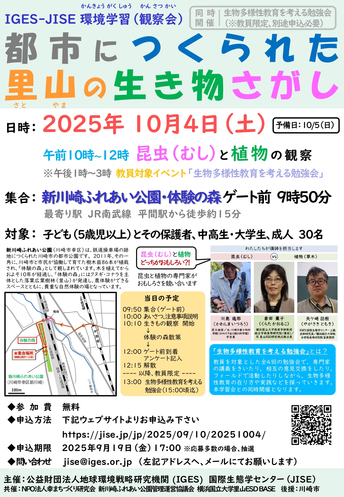 また、同日に教員対象イベントの「生物多様性教育を考える勉強会」も開催されます。