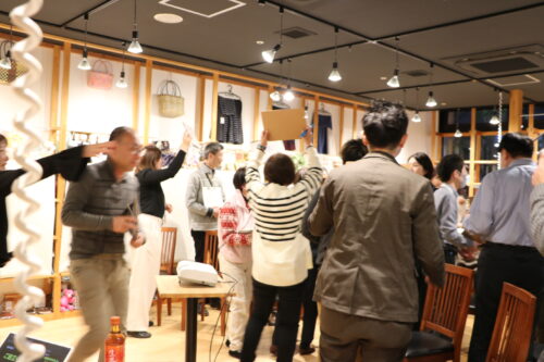 ウォーミングアップでは課題をクリアしながらチームを作っていくワークショップを3つ。 初対面同士が交流できるようなチーム作りを促し、各課題の後には出来上がったチーム内で自己紹介や名刺交換など交流の場をしっかり設けているところには、さすが橘さんの繋げる力だと感心しました。