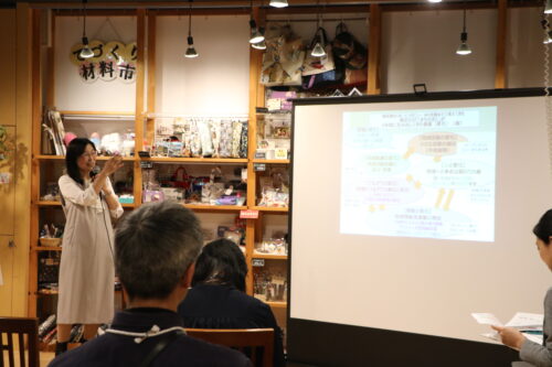 次にCSOネットワークさんより、まちのおとの約4年間の活動のふりかえり(ヒアリングやミニワークショップ等)の報告をしていただきました。生み出された価値や、事業と市民との関係性を整理、検証の内容を皆さんで聞きました。中にはメモを取りながら聞いていらっしゃる方も。