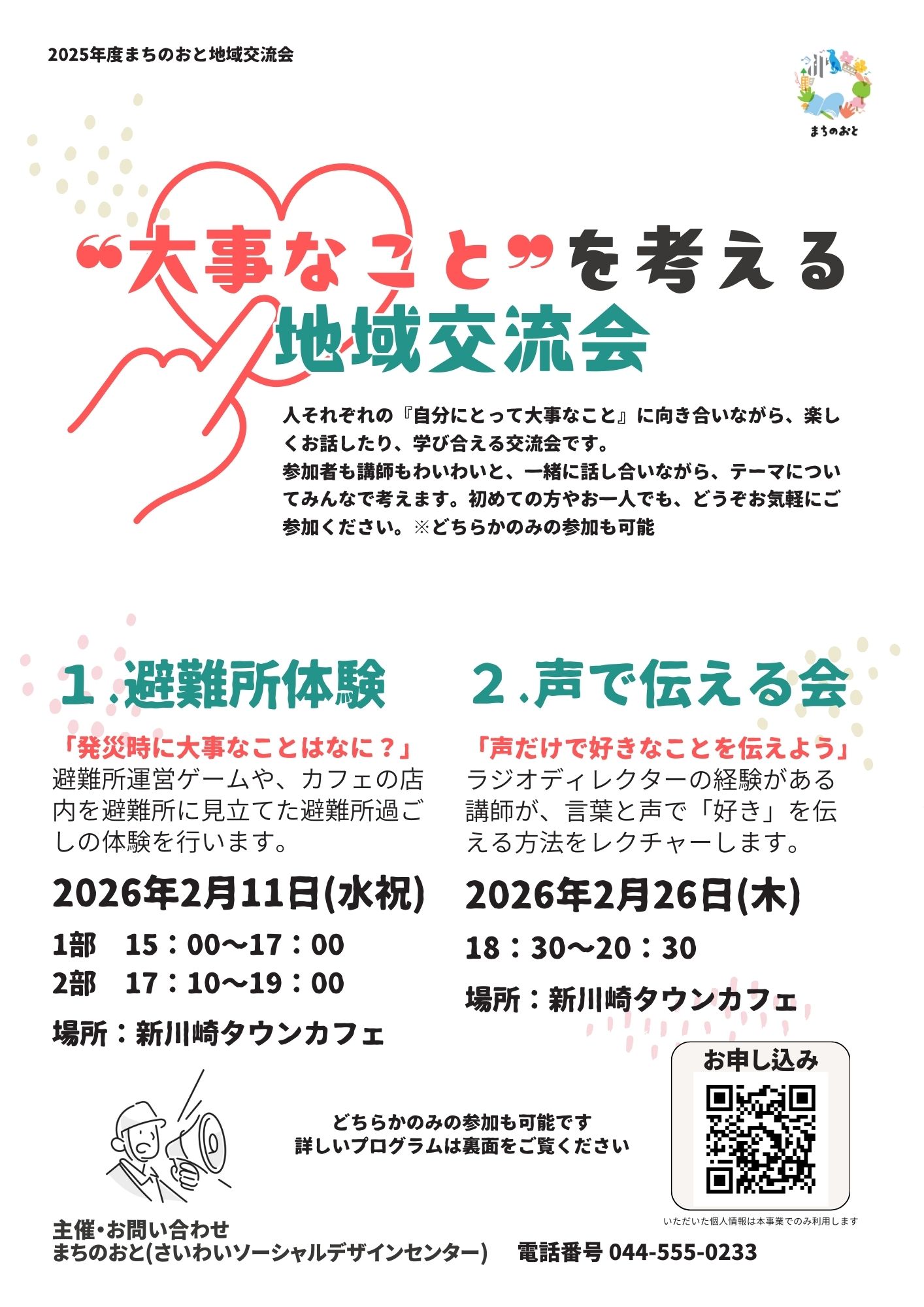新しい出会いを楽しむ地域交流会。今年度は、2つの企画を通じて『自分にとって大事なこと』をテーマに、楽しくお話したり、学び合います。初めての方やお一人でも、どうぞお気軽にご参加ください!(どちらかのみの参加も可能です。)